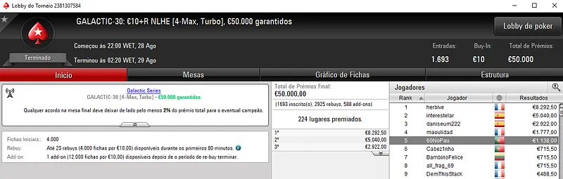 Mais Resultados Lusos nas Galactic Series da PokerStars.FRESPT: