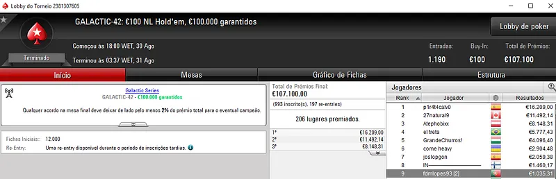 Ontem foi mais um dia sem títulos lusos nas Galactic Series. Depois de um bom arranque, os jogadores lusos têm somado bons prémios mas não tem vindo a conseguir atingir o lugar mais alto dos eventos.