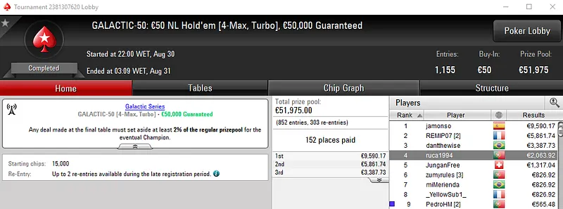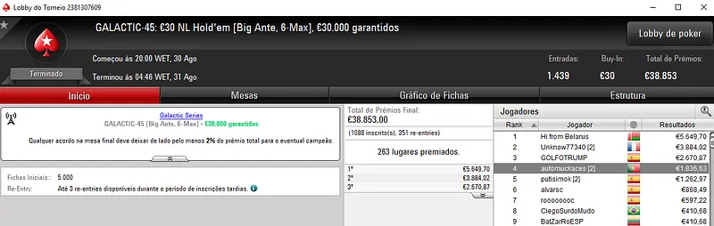 Mais Resultados Lusos nas Galactic Series da PokerStars.FRESPT: