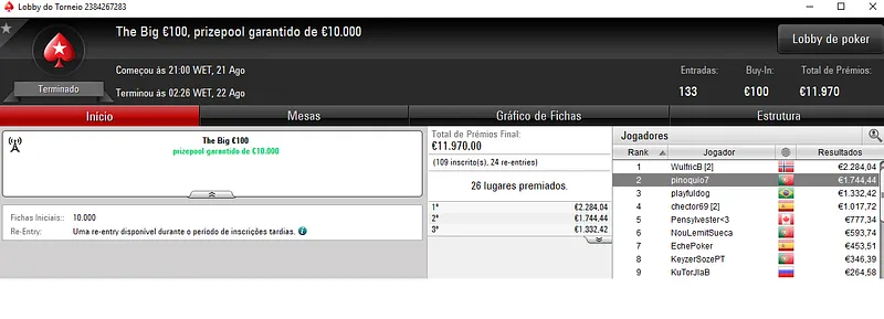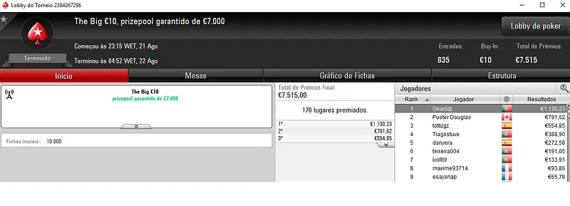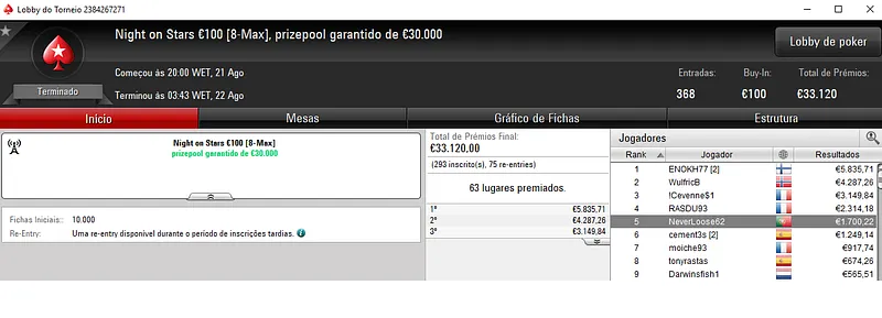 Resultados na PokerStars.pt: