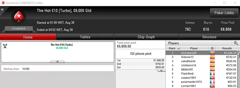 Também nos torneios regulares, os jogadores lusos estiveram em destaque e vários conseguiram receber prémios de 4 dígitos na PokerStars.FRESPT.