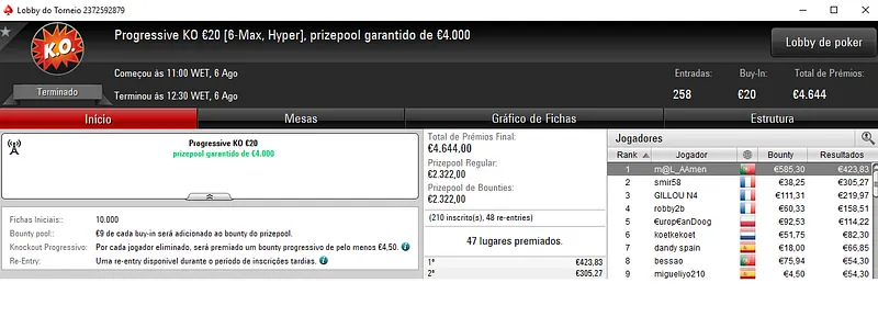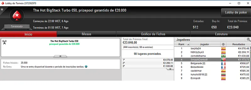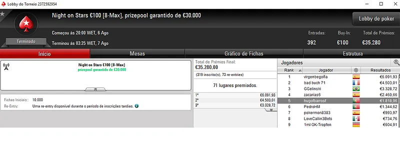 Resultados na PokerStars.pt: