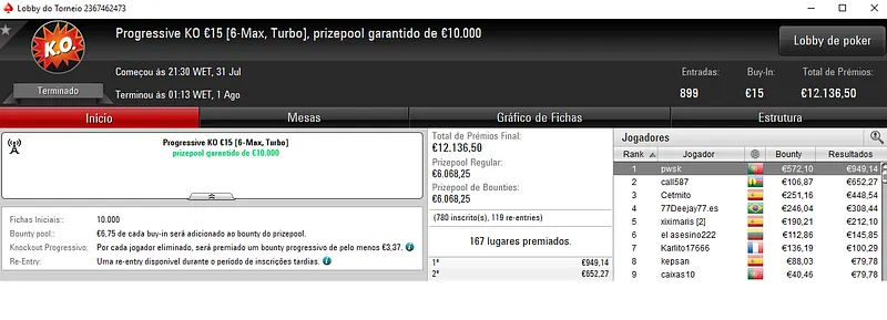 Resultados na PokerStars.pt: