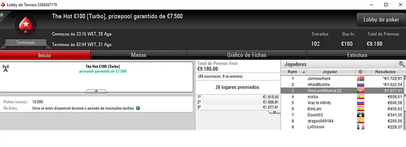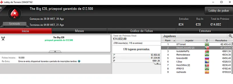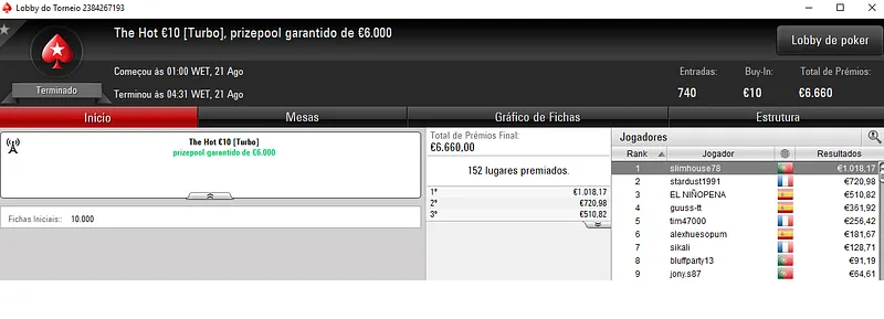 Resultados na PokerStars.pt: