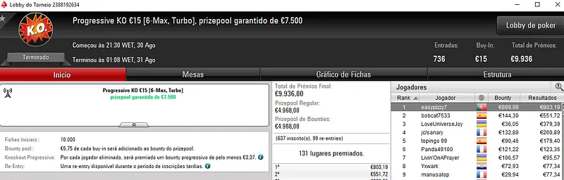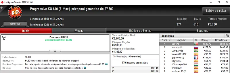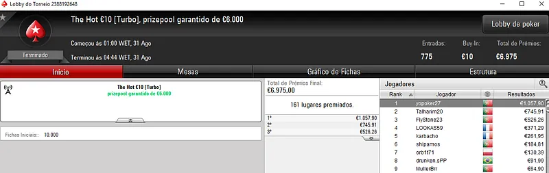 Resultados na PokerStars.pt: