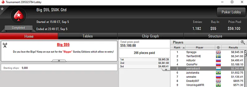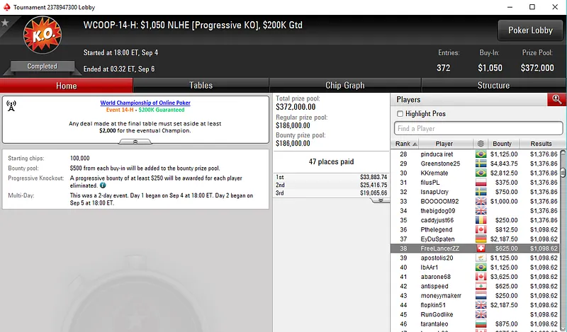 Este evento acolheu 185 entradas que se traduziram num prize pool acumulado de $1,850,000. No total, 23 jogadores saíram com prémio, onde João "Naza114" Vieira ainda arrecadou $37,395 na 12ª posição e Michel "FreeLancerZZ" Dattani faturou $22,512 em 18º.