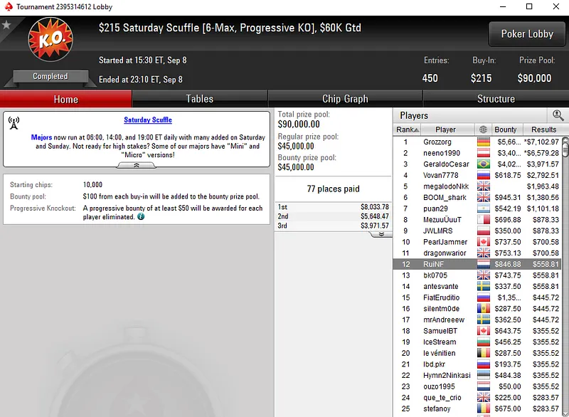 Depois de um dia bastante agitado no que toca a resultados lusos nas salas de poker online internacionais, ontem a sessão foi mais calma, mas mesmo assim com grandes resultados.