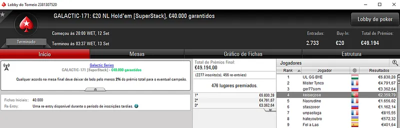 Mais Resultados nas Galactic Series da PokerStars.FRESPT: