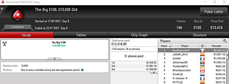 Apensas quatro jogadores portugueses atingiram os quatro dígitos de prémios nos torneios regulares da PokerStars.FRESPT. E apenas um conseguiu ultrapassar os dois mil euros.