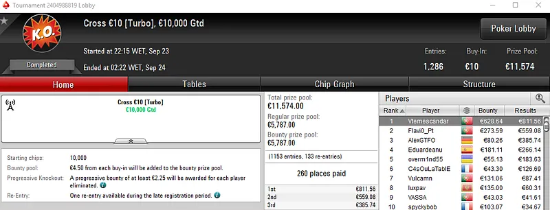 Outros Resultados na PokerStars.FRESPT: