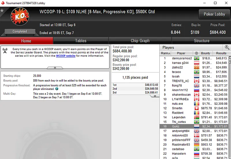 Naza114 Terceiro no WCOOP #18-High ($26,000) & Mais Resultados Lusos