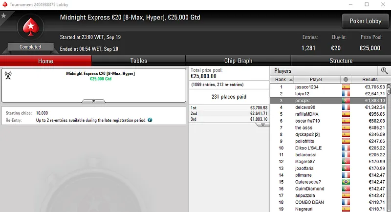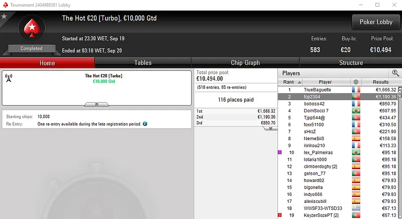 PokerStars.FRESPT: Vitória de iDuckz no The Hot BigStack Turbo €50