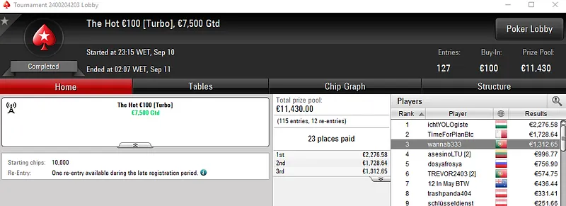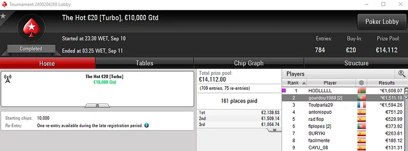 Resultados na PokerStars.pt: