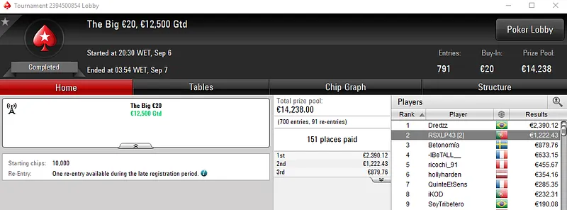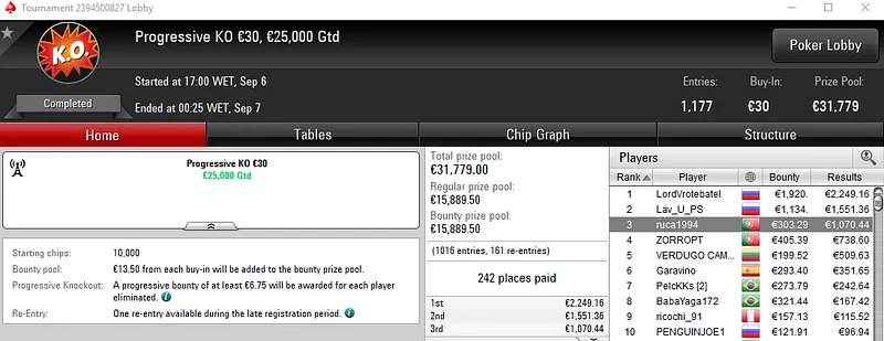 Resultados na PokerStars.pt: