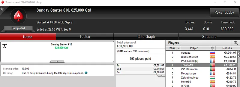 KidReira conquistou um título nas Galactic Series e também foi o grande vencedor dos torneios regulares ao conquistar o Sunday Ultra KO €100 com 317 entradas. O jogador luso esteve em grande forma neste torneio e levou para a sua conta mais €6,136, entre prémio e bounties. O prize pool deste evento chegou aos €28,530.