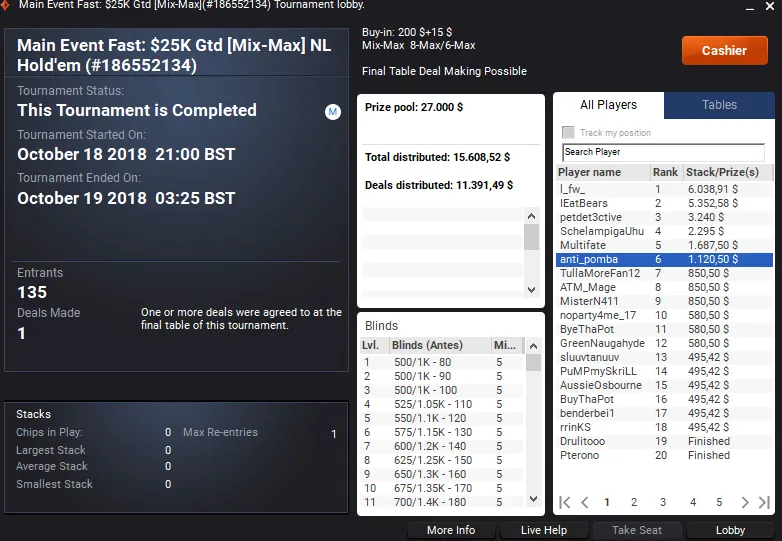 Os nossos jogadores de poker online também aproveitaram a sessão de quinta para grindar nas salas internacionais, onde conquistaram prémios importantes.