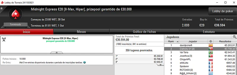 Foi um grande dia ação nas mesas da PokerStars.FRESPT para os jogadores de poker nacionais. A lista de resultados acima dos mil euros foi grande e muitos conquistaram torneios importantes.