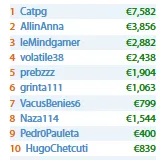 Já Pedro Marques esteve em destaque na partypoker, onde trouxe dois bons prémios. Primeiro, ele venceu o Bounty Hunter $15 Gtd com 172 entradas e $17,888 de prize pool. A medalha de ouro valeu $4,901 de prémio.