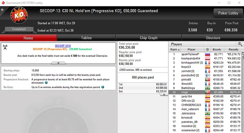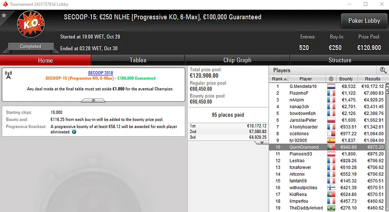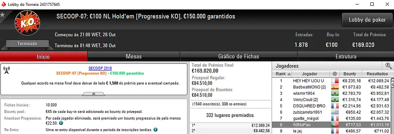 Outros Resultados no SECOOP 2018 da PokerStars.FRESPT: