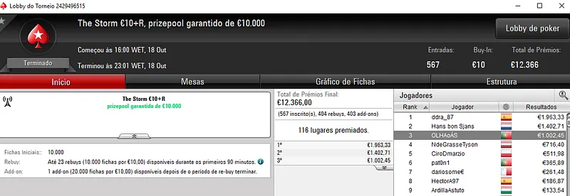 O título apareceu no SuperStack €10 com 1,369 entradas, onde WAGUI77 foi o mais forte e embolsou €1,845 de recompensa. Este torneio repartiu €12,500 pelos 269 melhores classificados.