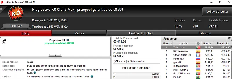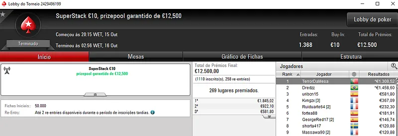 A Super Monday também foi generosa para os jogadores nacionais que arrecadaram grandes prémios na PokerStars.FRESPT.