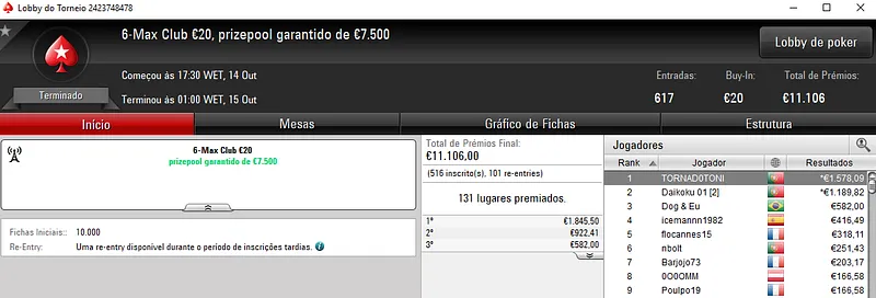 ZéVitor1949 e MM2LD Brilham na Sessão de Domingo da PokerStars.FRESPT