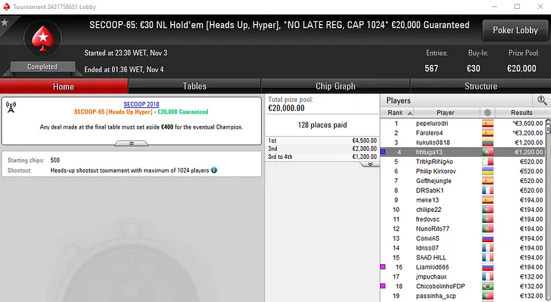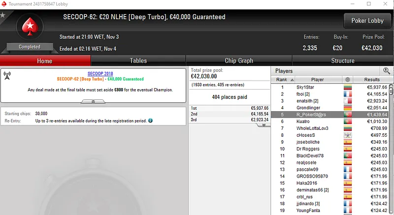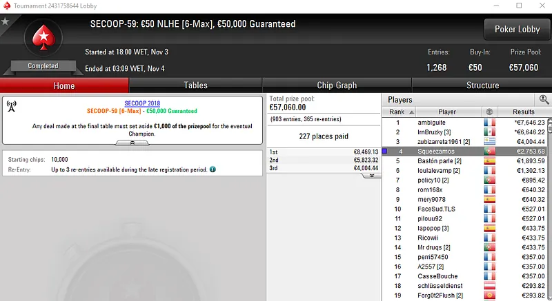 Outros Resultados no SECOOP 2018 da PokerStars.FRESPT: