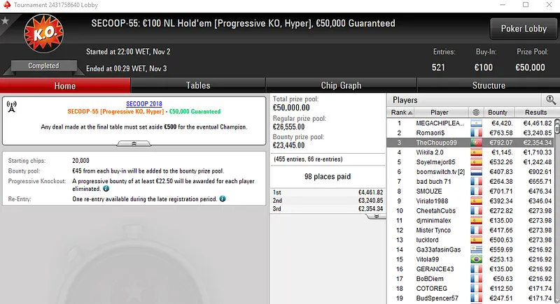 Outros Resultados no SECOOP 2018 da PokerStars.FRESPT: