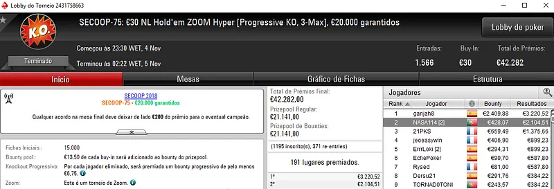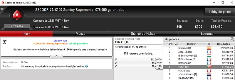 Outros Resultados no SECOOP 2018 da PokerStars.FRESPT: