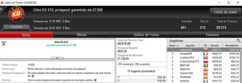 O maior resultado de ontem nesses eventos apareceu com a vitória de NuBaY_ZJ no Super Monday Uppercut €20 que acolheu 1,595 entradas. Este torneio acabou por repartir o prize pool garantido de €30,000, com o português a embolsar €3,453 de prémio, após acordo no 3-handed.