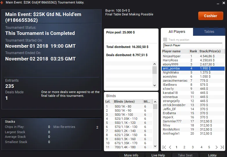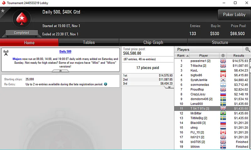 Outros Resultados nas Salas de Poker Online Internacionais:
