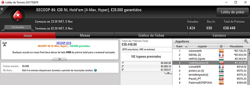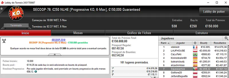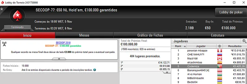 Outros Resultados no SECOOP 2018 da PokerStars.FRESPT: