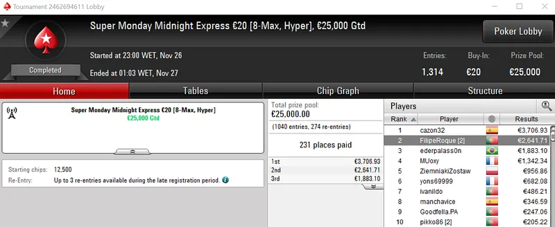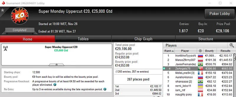 SérgioVeloso e slimhouse78 com Super Monday na PokerStars.FRESPT