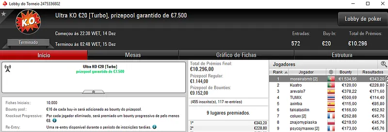 O maior resultado pertence a 60NoPau que se sagrou campeão do Hook €30 com 747 entradas. Este evento distribuiu um prize pool de €20,169, onde o jogador português encaixou €3,121.