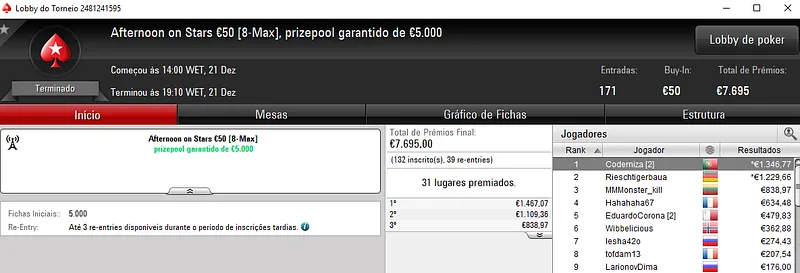 Com o Natal à porta, ontem os resultados de poker online nacionais na PokerStars.FRESPT foram um pouco mais baixo do que habitual.
