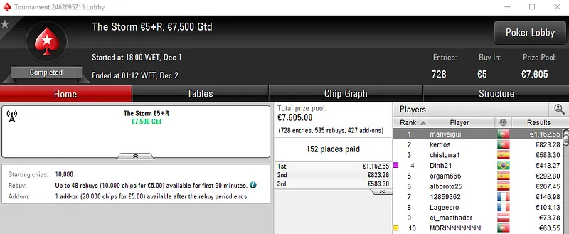 O maior resultado veio pelas mãos de ivanildo que se sagrou campeão do Night on Stars €100 com 289 entradas. Este torneio distribuiu €26,010 pelos 55 melhores classificados, onde o jogador nacional teve direito à maior fatia, cerca de €4,674 de prémio.