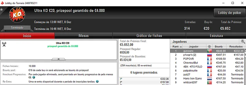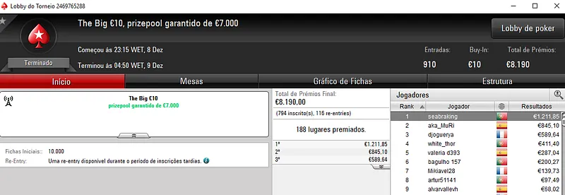 A medalha de prata ainda rendeu €2,257 a LeMadara no Bigger €10. Aqui foram registadas 2,795 entradas com o prize pool a subir aos €25,155.