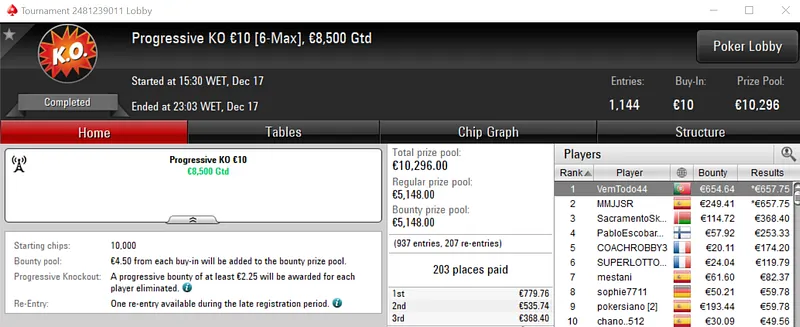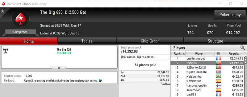 Outros Resultados na PokerStars.FRESPT: