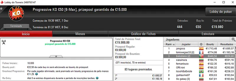 ZéVitor1949 Vence Eliminator €200 da PokerStars.FRESPT & Mais