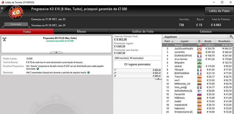 Já monpoker897 garantiu a medalha de ouro no Ultra KO €20 [Turbo]. O jogador português foi o melhor entre um field de 517 entradas e subiu ao lugar mais alto do pódio para receber um prémio total de €1.475.