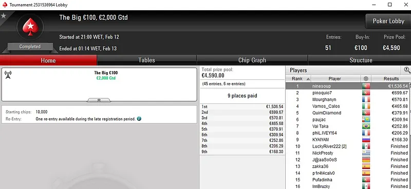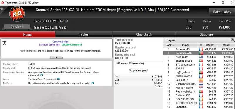 Já Coderniza foi ao heads-up do Carnaval Series-94: €30 NLHE [Deep] e, após um acordo com o último dos adversários, garantiu um prémio de €4.495 e a medalha de prata.