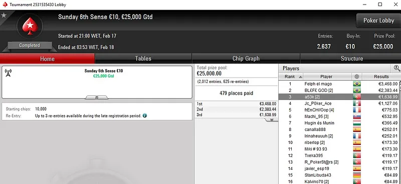 No que diz respeito aos torneios regulares, também tivemos vários portugueses a encaixar bons prémios, com destaque para a vitória de Filipe "Kuatro" Silva no Sunday Progressive KO €20. Este torneio contou com 3.278 entradas e nenhuma delas conseguiu parar o jogador luso, que assim subiu ao lugar mais alto do pódio para receber um prémio total de €6.889.