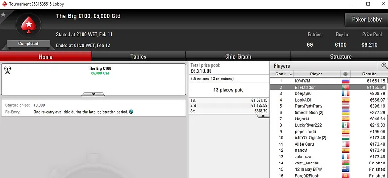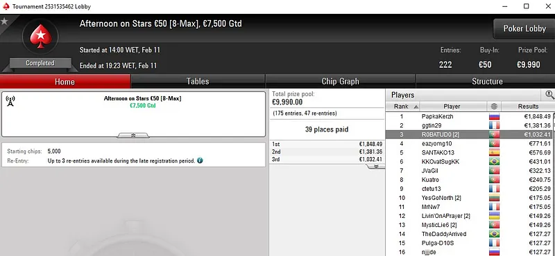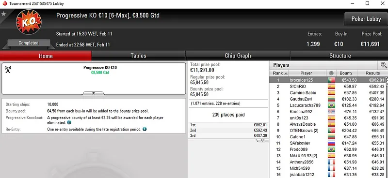 | 100 | 21:00 | € 50 | 8-Max PKO Turbo | € 75.000 |