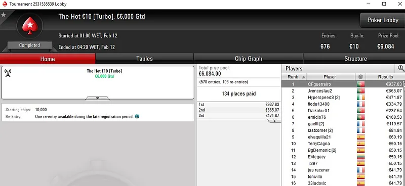 O jogador da Polarize Poker Fernando "Squeezamos" Ferreira também brilhou na sessão de ontem com um segundo lugar no Carnaval Series-90: €50 NLH [4-Max, Turbo]. Após quase quatro horas e meia de jogo, Squeezamos chegou a um acordo no heads-up e garantiu a maior fatia do bolo, um prémio de €6.404.