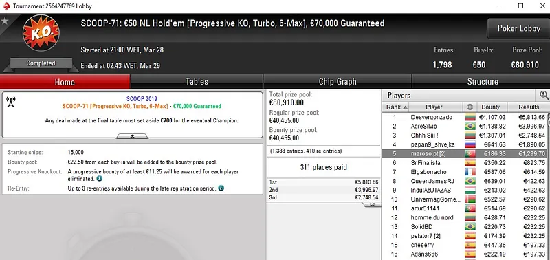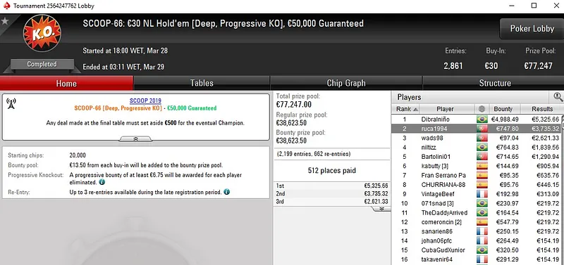 O sessão de poker online desta quinta-feira trouxe mais 16 eventos do SCOOP 2019 da PokerStars.pt, que resultaram em prémios bem generosos para as contas dos tugas e mais um título do festival para Portugal.