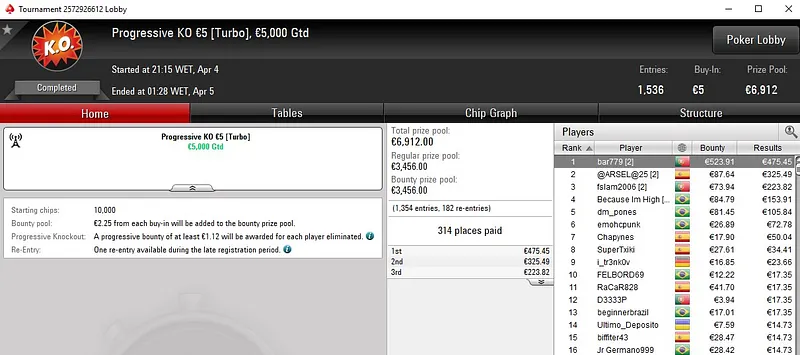 | 187 | 30 € | 17:00 | SuperStack 6-Max PKO | 30,000 € |