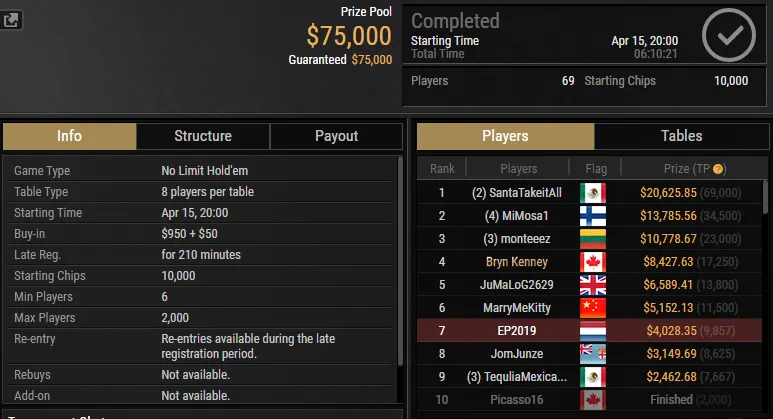Já na GGNetwork, onde joga com o nick "EP2019", o Team Winamax Pro registou um 5º lugar no Blade Series #017 para $11.047 e somou mais $4.028 ao terminar em 7º no Blade Series #018.
