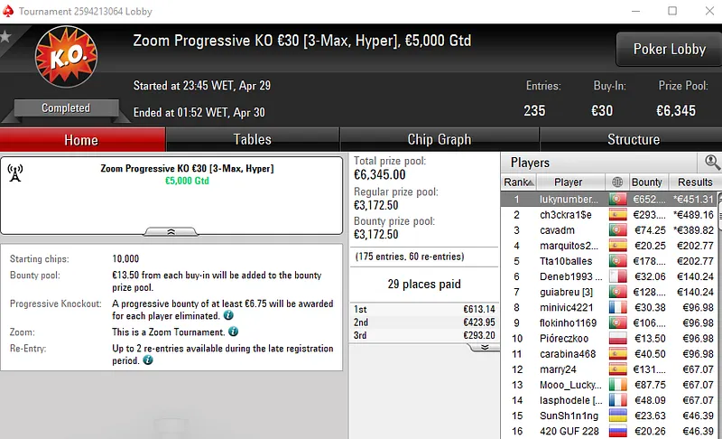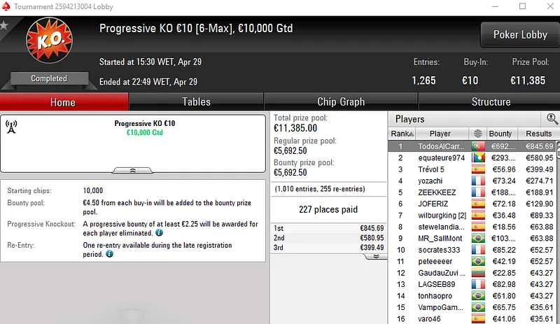 Quem também faturou um bom prémio de quatro dígitos foi Ricard1993. O português bateu toda a concorrência no Super Monday Bigger €10 e transformou um buy-in de €10 num prémio de €3.808 em pouco mais de sete horas de jogo.
