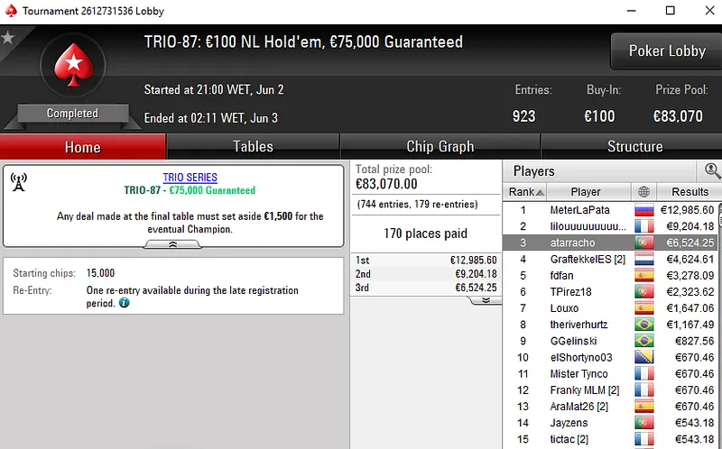 Nesta domingo de grind, os jogadores portugueses conquistaram mais três títulos nas TRIO Series, elevando para 18 o número de vitórias do país nesta edição do festival de MTTs da PokerStars.pt.