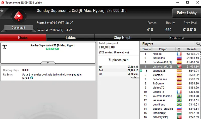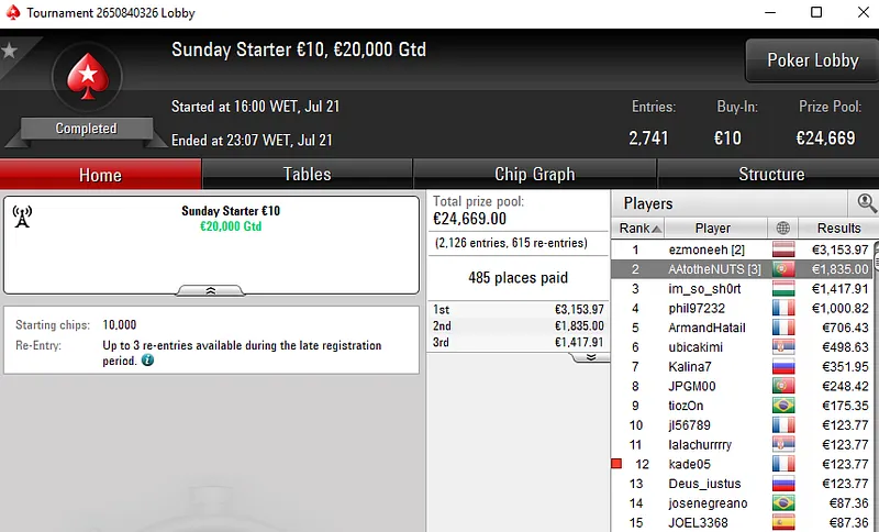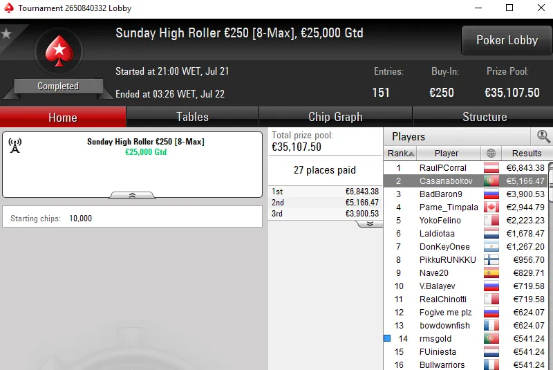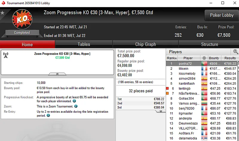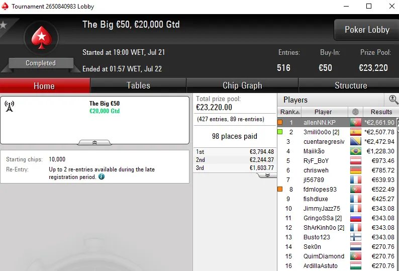O jogador dono da conta OndeSeFolda? repetiu o feito do seu compatriota marcomartimr, campeão do The Classic no domingo passado, e garantiu o maior prémio luso da sessão de ontem.